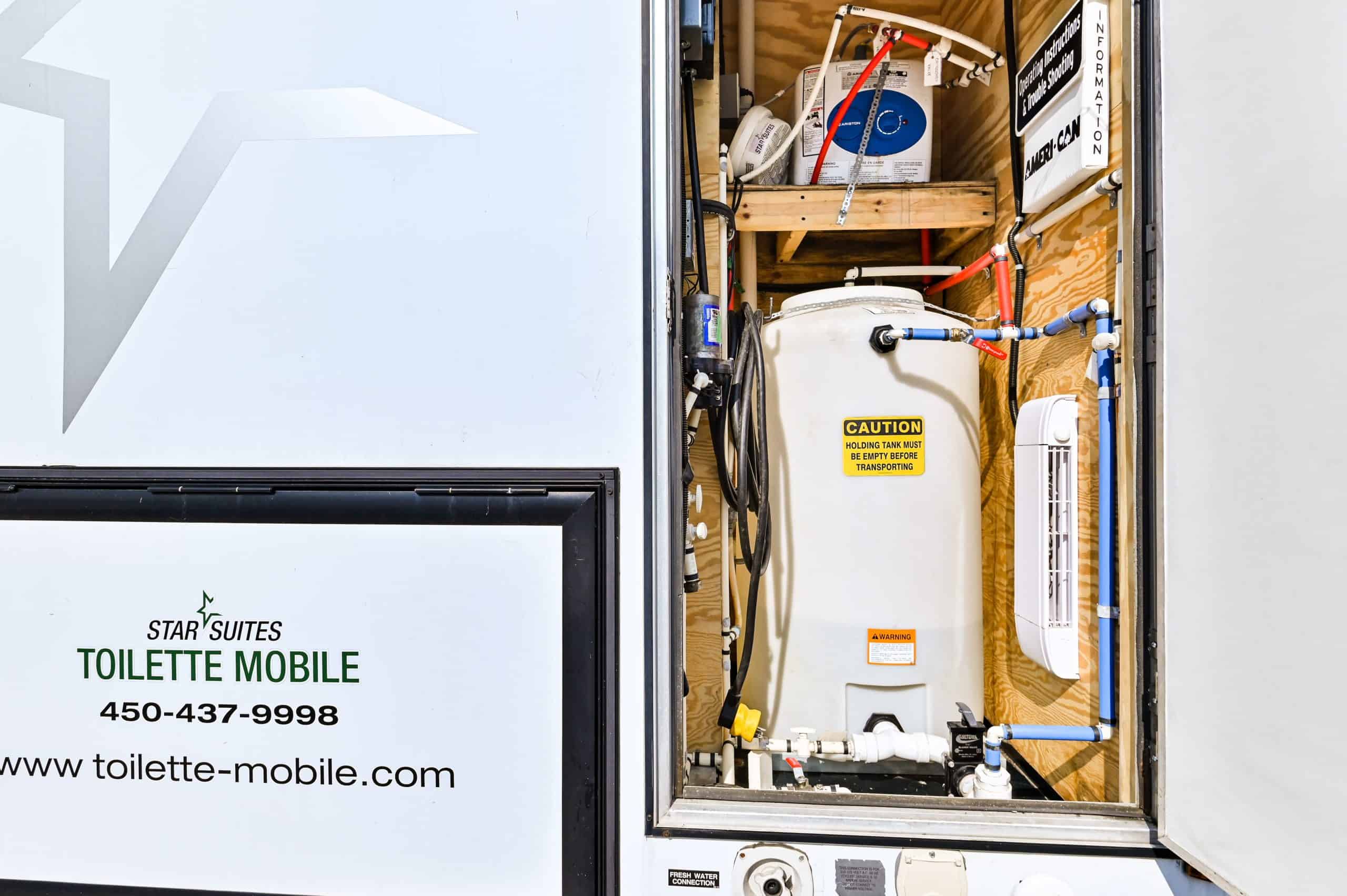 Modèle spécifiquement conçu pour les personnes à mobilité réduite. Cette unité est remorquable et facilement déplaçable. Système hydraulique de mise au niveau du sol de la toilette. Adaptable à vos besoins and autonomie, elle est utilisable 4 saisons et peut être facilement branché aux services publiques (eau / égout).